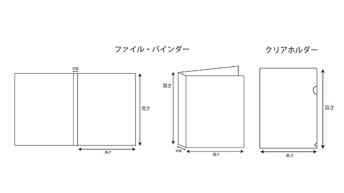 (例: 長さ 240 x 高さ 310 x 背幅 15mm)